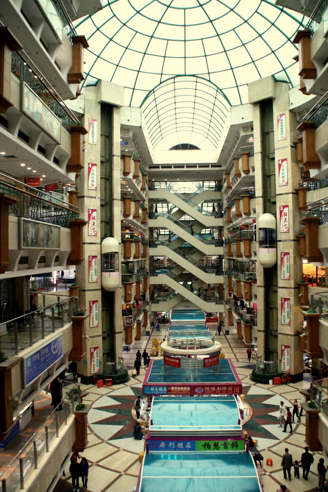 Out of every five women I meet here, one will rave nonstop about the jade and pearl markets- mostly for their abundance of goods and bargain-friendly practices. Since the markets are about a 25-minute walk from my house, I decided to have a look myself. Just north of Shangxia Jiu Lu, a hot pedestrian street and shopping destination in it’s own right, the Jade and Pearl markets are located directly across the street from each other. I couldn’t find the entrance to the pearl market (will have to go back another day) but I very easily found the jewelry market. Now, the word “market” is very deceiving. I thought I would be weaving in and out of smelly old alleyways, poking through jewels and gems like vegetables at the farmers market. Instead, as I entered the “market” I saw the photo above- a six story shopping mall behemoth- selling nothing but jewelry. Not only are there six whole floors, but each floor is a deep maze of vendors. Sometimes even two separate vendors sharing one booth, selling every sort of polished rock and silver imaginable. Rocks and silver aren’t really my thing so I didn’t stick around for too long, but next time I’m there I’m going to go in search of some gold.