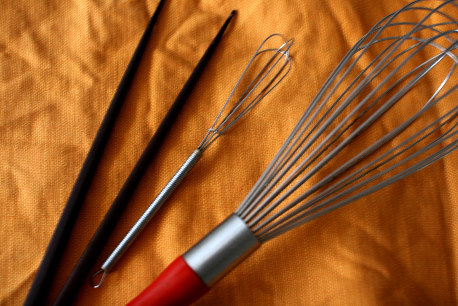 I actually only have two real whisks, and used a pair of chopsticks as one whisk, because that’s what chinese people do (we didn’t use whisks growing up, we always use chopsticks to beat eggs. It works). Along with my mini mini whisk and my giant whisk, I had a Goldilocks and the Three Whisks situation. An odd trio, indeed.
