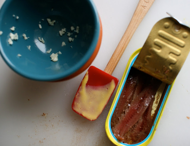 Anyway, rather than being a pain, this actually gives me an excuse to make the things I’ve always wanted to try back home, but had been too lazy or short on time to do so. It’s easy to make homemade dressing, but even easier to run out to the corner deli to buy a bottle. I’ve especially always wanted to make my own caesar dressing, after trying a good friend’s awesomely garlicky, mayonnaisey homemade recipe a couple of years ago. The secret? According to her, lots of pressed garlic and a disgusting amount of mayonnaise. Fat and flavor, who would’ve thunk….