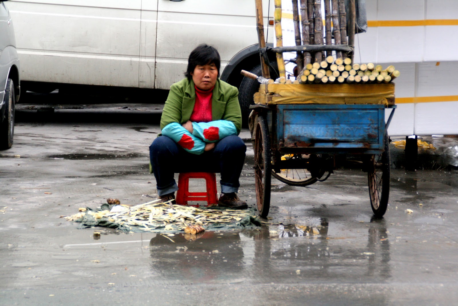 Now that it’s cold I’ve seen the sugar cane vendors retreat back into their homes and stores, but when the weather is warm there is fresh sugar cane on every corner, off of each metro exit. The other day I spotted this lone sugar cane vendor parked amidst a sea of white vans. Nobody craves sugar canes in chilly weather. She didn’t look too thrilled…
