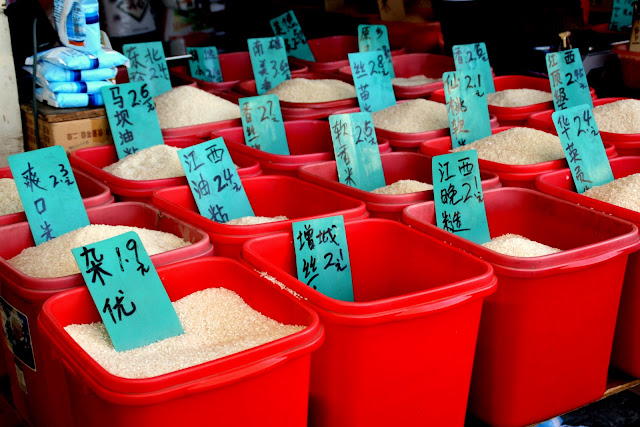 My skepticism was partially defeated (I wish I could say it was fully defeated). Yes, there was a huge slab of bacon-looking meat that looked fried, hanging on a hook at a vendor cart. But it wasn’t quite the same as bacon- not cured or smoked or nearly as salty. But I was unable to resist the temptations of fatty port, so we ordered a couple orders over rice and an order of charsiu (traditional Chinese red-braised pork) over rice.