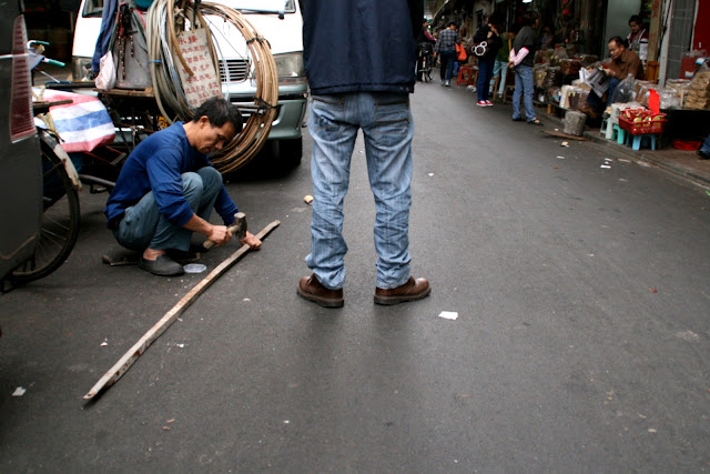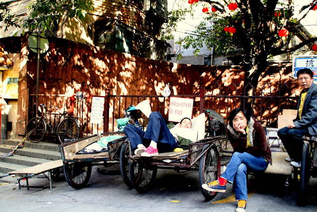 A lot of people lounge around the streets in China- on the back of wagons, on park benches, on little plastic stools….but this guy took his afternoon nap to the next level. This corner, which I’ve passed hundreds of times, had never been subjected to any piles of trash or old furniture. It’s not even really close to any major buildings. As you might imagine, it made for quite a confusing and interesting sight. I also find it funny that he took off his shoes. As if he was going to preserve the quality of the couch?